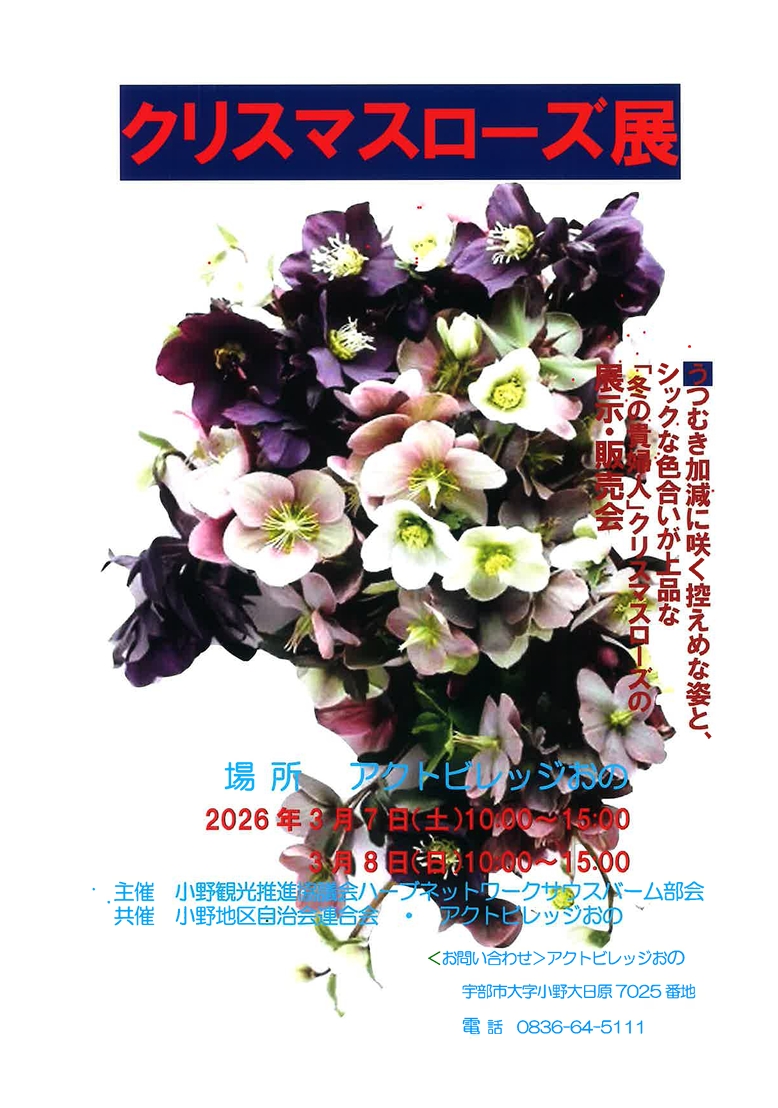 3月7日(土)、8日(日)の二日間10時から15時 アクトビレッジおののビジターセンターで開催されます。
